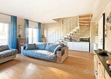 Proponiamo in vendita un attico meraviglioso dalle caratteristiche uniche nel suo genere, situato all'interno di un raffinato contesto condominiale circondato da un rigoglioso parco privato. Il verde curato e gli alberi ad alto fusto accompagnano piacevolmente lungo il percorso che conduce all'abitazione, offrendo un'atmosfera di quiete e riservatezza. Il complesso è dotato di campo da tennis interno e aree dedicate ai bambini, perfette per il tempo libero di tutta la famiglia.