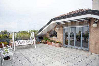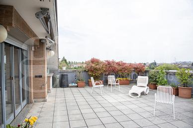 CESANO MADERNO Cassina Savina - Propone Antonio Orsini - Un attico in una delle residenze più prestigiose e rappresentative del quartiere all'interno di uno splendido giardino condominiale di ca 3000 mq. L' abitazione con una superficie di 235 MQ si trova al terzo e quarto piano servito dall'ascensore, composto da: ingresso direttamente sul salone doppio diviso in zona pranzo, divani/conversazione e zona TV, si prosegue con la cucina abitabile con accesso sul terrazzo coperto di ca 35 mq, bagno di servizio, un corridoio ci conduce nel reparto notte costituito da tre camere e un bagno padronale, si prosegue poi con il piano superiore collegato sia dalla bella ed imponente scala in marmo, sia dalla scala esterna condominiale, dove insiste un ulteriore appartamento composto da un Locale Open space con camino, una camera un bagno ed una grande e meravigliosa terrazza di 60 mq, da cui si può ammirare il panorama sulla cittadina e godere la giusta privacy per tutta la famiglia. L'appartamento è caratterizzato dalla tripla esposizione Sud-Est-Ovest ed è libero su tutti e quattro i lati. Termoautonomo con aria condizionata/inverter in tutti i locali. Il prezzo a cui viene proposto è pari a €. 598,000,00 comprensivo di una cantina di 25 mq e un box doppio ad uso autorimessa. Vi è anche la possibilità di poter abbinare un secondo box doppio attiguo al prezzo di € 30.000,00. Infine l'appartamento può anche essere suddiviso in due singole unità immobiliari. La posizione strategica dell'appartamento permette di raggiungere facilmente tutti i servizi essenziali: la stazione di Seregno, le fermate dei mezzi, il supermercato, l'Oratorio, la Chiesa, la farmacia, le Poste, la scuola dell'infanzia e la scuola primaria. Classe energetica D. 110,64