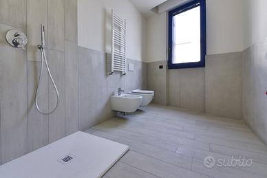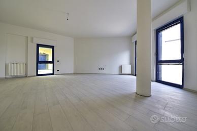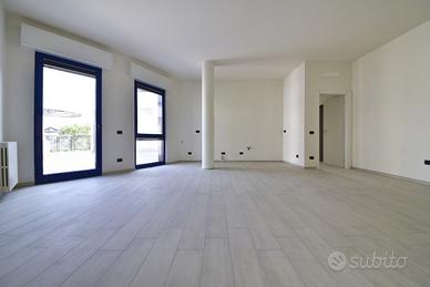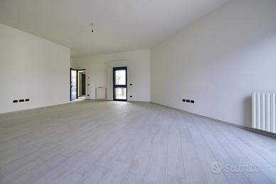 La soluzione è composta da: ingresso, soggiorno con angolo cottura a vista collegata al terrazzo, doppio bagno, camera matrimoniale e camera singola.