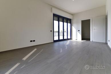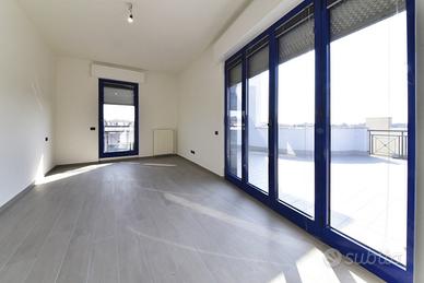 La soluzione è composta da soggiorno con angolo cottura a vista collegata al terrazzo, doppio bagno, doppio ripostiglio, camera matrimoniale con cabina armadio e n. 2 camere singole.