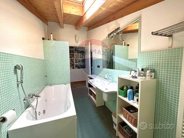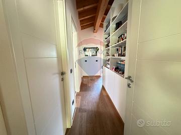 La zona notte, ben distribuita tramite disimpegno, ospita tre comode camere da letto, tra cui una spaziosa matrimoniale con balcone, due bagni (uno con vasca e doccia, laltro adibito anche a lavanderia) e dettagli architettonici di pregio, come le travi a vista, che conferiscono calore e carattere agli ambienti.