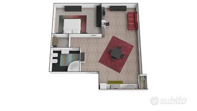 Gli interni sono accoglienti e ben organizzati: un soggiorno con cucina a vista rappresenta il cuore della casa, completato da una camera da letto e un bagno. Il balcone, offre una piacevole vista aperta sul contesto circostante.