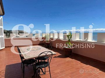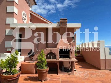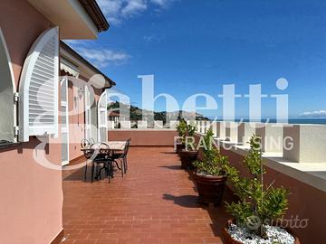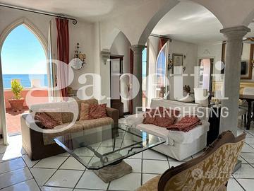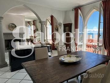 Attico Vista Mare, nel cuore della suggestiva Riviera di Ponente, all'interno della prestigiosa e storica Villa Ludovici, proponiamo in vendita, in esclusiva, un attico di straordinaria unicità. Questa raffinata proprietà, caratterizzata da generose metrature e sviluppata su più livelli, offre una vista mare semplicemente impareggiabile, sospesa a picco sulla splendida costa ligure, in un contesto riservato ed estremamente signorile. Al primo livello, l'ingresso si apre su un elegante disimpegno che conduce alla zona notte, composta da tre camere da letto, di cui una impreziosita da un ampio terrazzo privato. Completano il piano un bagno con balcone e un ulteriore grande terrazzo, ideale per momenti di quiete all'aperto. Il piano superiore accoglie un magnifico salone triplo con camino, inserito in un ampio open space inondato di luce naturale, dove ogni ambiente dialoga armoniosamente con l'esterno. Troviamo inoltre un secondo bagno e una spaziosa cucina abitabile, anch'essa affacciata su un panorama mozzafiato. L'intero livello è avvolto da un ampio terrazzo fronte mare, perfetto per pranzi e cene all'aperto, arricchito da barbecue e forno a legna: uno spazio esclusivo pensato per vivere appieno la bellezza del paesaggio. La proprietà si completa con un ulteriore piano mansardato, che ospita una quarta camera da letto, due ambienti versatili adibiti a salottino e zona deposito, oltre a un terzo bagno. Un attico raro e irripetibile, capace di coniugare prestigio, privacy e una vista spettacolare. Soluzione ideale come residenza di charme o dimora esclusiva per indimenticabili soggiorni sul mare. Disponibile inoltre un ulteriore garage, acquistabile separatamente. Le informazioni contenute in questo annuncio hanno carattere puramente informativo e non costituiscono elemento contrattuale. Per maggiori informazioni e per la visita di questa interessante proposta immobiliare si prega di contattare William al ufficio