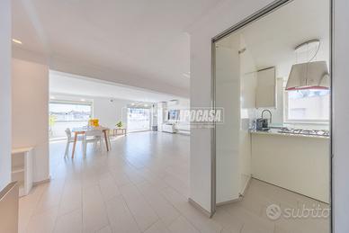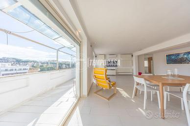 La Tempocasa Vigna Clara Fleming vi propone in vendita, nell'esclusivo quartiere di Vigna Clara, in un elegante condominio recentemente ristrutturato, un attico completamente ristrutturato. L'immobile si compone di un ingresso che apre su un doppio soggiorno ampio e luminoso grazie alle grandi vetrate, dal soggiorno si accede ad una terrazza vivibile, cucina di design su misura, ed uno studio, disimpegno che conduce alla zona notte attraverso una porta scorrevole in vetro fumé composta da due ampie camere da letto matrimoniali entrambe con accesso ad uno spazio esterno, una con una cabina armadio all'interno e due bagni eleganti e rifiniti. L'immobile è in eccellente stato di manutenzione, è stato recentemente ristrutturato con materiali di alta qualità ed è dotato di porte scrigno, allarme collegato a porte e finestre controllabile da remoto, impianto audio integrato (compatibile con TV Bose), termosifoni di design, infissi a doppia camera con doppia apertura, persiane interne nelle vetrate del salone, impianto di aria condizionata e porta blindata. Qualora fosse necessaria la terza camera gli ampi spazi dell'immobile permettono di ripristinarla facilmente. Possibilità di acquistare a parte box auto nelle vicinanze. Situato in zona Vigna Clara, uno dei quartieri più centrali e ben collegati, la zona gode di servizi di trasporto, come la nuova stazione di Vigna Clara, e di importanti cliniche come Paideia e Villa Claudia. A pochi passi si trovano supermercati, mercati, scuole pubbliche e private, rendendo questa proposta ancora più interessante. Per maggiori informazioni vi invitiamo a contattarci ai seguenti recapiti: o solo whatsapp o romavignaclara@tempocasa.it - Classe: NC