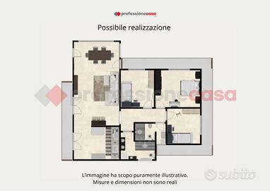 La soluzione, sita al secondo piano senza ascensore e con ingresso indipendente, si compone in questo modo: ingresso sull'ampio e luminoso salone caratterizzato dalla presenza di numerose vetrate e portefinestre, angolo cottura spazioso e ben integrato nella zona giorno grazie alla penisola posta a "separare" l'ambiente cucina da quella relax.