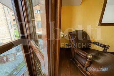 Completano la proprietà pavimenti in parquet, porte in legno con vetri di Murano, serramenti a doppio vetro, predisposizione per allarme e porta blindata, dettagli che confermano la qualità e la solidità di questo immobile.