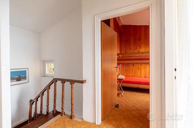 Una elegante scala in legno porta al piano superiore, dedicato alla zona notte, composta da tre camere da letto tutte esposte verso il mare e due bagni. Gli ambienti sono valorizzati da soffitti alti e da un'ottima luminosità naturale.