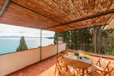 L'immobile si apre su un ampio e luminoso salone che affaccia sulla splendida terrazza fronte mare, dalla quale si gode una vista aperta di grande fascino, immersa nel verde e nella quiete. Il silenzio e la privacy rappresentano un valore aggiunto della proprietà.