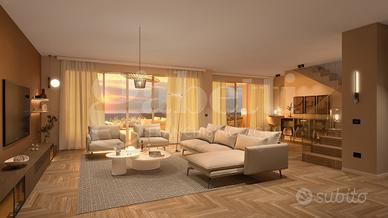 PANORAMICO e LUMINOSISSIMO ATTICO-SUPERATTICO con viste mozzafiato sulle Prealpi brianzole e sul verde circostante, beneficiato da una TRIPLA ESPOSIZIONE lambita, su ogni lato, da una porzione di terrazzo. Un ingresso living introduce al salone suddiviso nell'ampia ed ariosa zona living che si affaccia sul terrazzo e nella zona dining composta da sala da pranzo e cucina open plan, anch'esse affacciate, dal lato opposto, sul terrazzo. Completa la zona giorno un pratico vano di servizio/lavanderia ed un bagno ospiti. La zona notte si sviluppa lungo il corridoio a cui accedono una SUITE PADRONALE con locale guardaroba e sala da bagno (la camera da letto accede al terrazzo), una JUNIOR SUITE con BAGNO PRIVATO ed accesso al terrazzo, una terza camera ed un ulteriore bagno (tutti i bagni, ad eccezione di quello di servizio, sono dotati di finestra). Una scala aerea collega la zona l