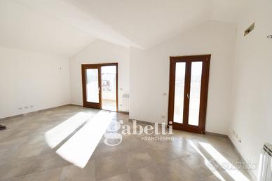 Non da meno, la presenza di un ascensore con chiave elettronica garantisce un accesso sicuro e riservato all'attico, che si distingue per la sua eleganza e la sua vista mozzafiato.