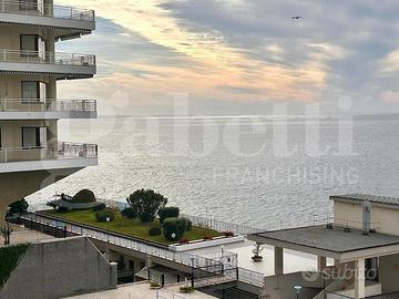 Collocato al quarto ed ultimo piano della palazzina, l'alloggio vanta un'esposizione angolare su sud, est e nord, garantendo una straordinaria luminosità naturale che permea gli spazi interni per l'intera giornata. L'attico è facilmente raggiungibile grazie agli ascensori condominiali, uno dei quali porta direttamente in forma privata all'accesso di questo splendido immobile. Varcando la soglia, ci accoglie un ingresso luminoso che conduce alla spaziosa zona living: un salone raffinato con cucina open space, perfetto per trascorrere momenti di relax o convivialità con amici e familiari. Da qui, si accede al grande terrazzo fronte mare, un angolo di paradiso dove godere l'aria fresca e le splendide albe o tramonti sul Mar Ligure. Troviamo inoltre una zona adibita a cucina estiva ideale per cene all'aperto nelle calde serate estive e che amplia ulteriormente le potenzialità di questo spazio esterno.