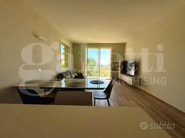 In un'esclusiva villa bifamiliare, proponiamo in vendita un attico su due livelli con incantevole vista lago.