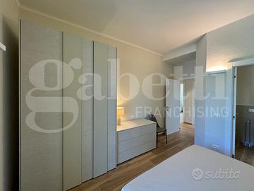 In un'esclusiva villa bifamiliare, proponiamo in vendita un attico su due livelli con incantevole vista lago.