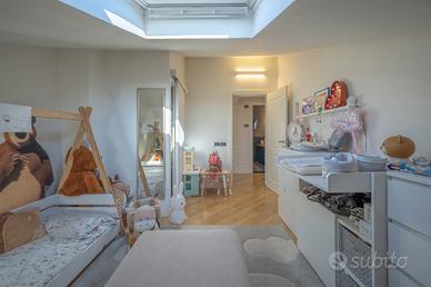 La zona notte è composta da tre camere da letto: una matrimoniale impreziosita da una comoda cabina armadio, una camera doppia con armadio a muro, una camera singola attualmente adibita a guardaroba - locale lavanderia, per comodità nella gestione quotidiana. Infine troviamo due bagni finestrati dalle finiture di altissimo livello, dal design raffinato e contemporaneo.