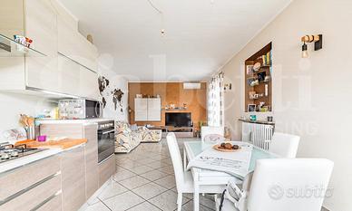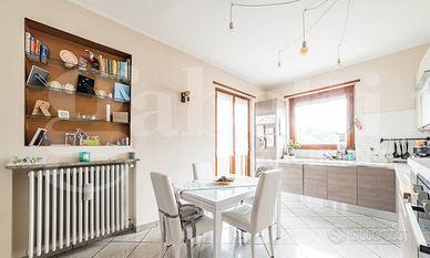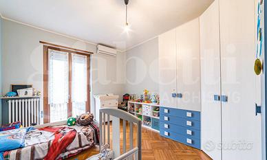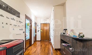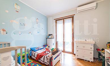 Arricchiscono la soluzione la presenza di due balconi e due terrazzi per godere della luce e del panorama circostante in ogni stanza, il curato giardino condominiale, un box auto con apertura automatica, magazzino e cantina.