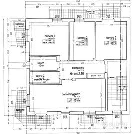 Luminoso e spazioso, dispone di tre camere da letto, cucina abitabile su ampio soggiorno living, funzionale disimpegno con armadiature, due bagni completi di doccia e vasca.