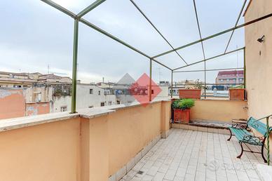 ampio ingresso, sala da pranzo aperta sul cucinotto, quattro camere da letto, di cui due con affacci esterni su Viale Regina Margherita e due con affacci interni che danno sul distacco con l'altra palazzina, due servizi (uno finestrato) e un bellissimo terrazzo di 20 mq circa; ad offrire ulteriore spazio e funzionalità all'abitazione, un'ampia e comoda soffitta finestrata.