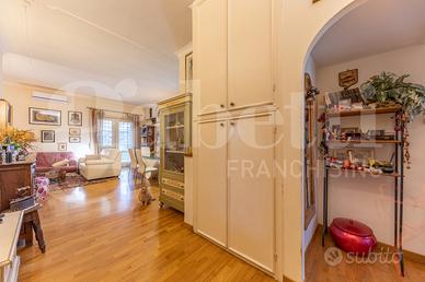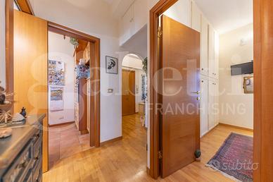 L'appartamento ha una pianta regolare ed è in buone condizioni di manutenzione, i due bagni sono stati ristrutturati recentemente, i pavimenti sono in parquet; sono presenti 3 soppalchi e grate alle finestre; gli infissi sono in pvc con doppi vetri; il riscaldamento è centralizzato con contabilizzatori; sono presenti condizionatori in tutte le camere.