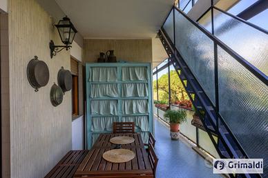 Il piano attico è dotato di doppio accesso ed è composto da grande salone a vista con zona pranzo ed ampie finestre che affacciano direttamente sul terrazzo, disimpegno per la cucina con affaccio sul balcone, comodo studio con balcone e bagno privato finestrato e servito dal secondo accesso della casa; l'altro disimpegno ci accompagna nella zona notte del piano, composta da due ampie camere da letto, entrambe con affaccio sui terrazzi, altro bagno finestrato con doccia. La comoda scala interna lineare, rivestita in pregiato legno, conduce alla zona notte del piano superiore, che ospita un soggiorno, due camere da letto con terrazzo perimetrale di mq. 155 ca e un bagno finestrato con doccia. I terrazzi dei due piani risultano collegati ed accessibili anche dalla scala lineare esterna in ferro.