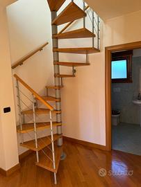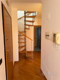 L'immobile occupa il 2° e 3° piano, ultimo, delle piccole palazzine in cortina con ascensore, ed è composto da ingresso, soggiorno con angolo cottura e con doppio accesso al terrazzo, due camere da letto matrimoniali con affaccio diretto sul balcone angolare, ampio bagno finestrato con vasca idromassaggio; la scala interna, completamente realizzata in legno, conduce al piano superiore che ospita la comoda mansarda, dotata di due lucernari, un ulteriore spazio con molteplici funzionalità (tipo cabina armadio), il bagno al piano con doccia.