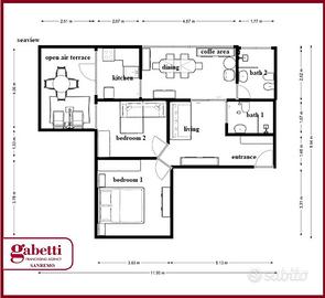 Spazi Interni: ingresso accogliente, spaziosa camera matrimoniale, seconda camera, due bagni con eleganti rifiniture in effetto marmorizzato, ampia sala principale, pratico cucinino, sala da pranzo separata perfetta per gustare ottimi pranzi.