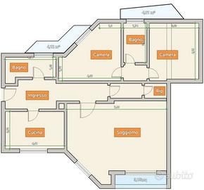 L'immobile si presenta con ingresso, soggiorno doppio, cucina abitabile, due camere da letto, ripostiglio e doppi servizi, oltre a tre balconi che garantiscono una buona fruibilità esterna.