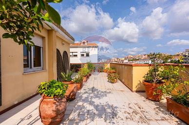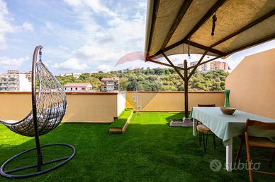 Il vero punto di forza della proprietà sono gli spazi esterni: un terrazzo panoramico di 90 mq collegato direttamente al soggiorno, ideale per cene, relax e momenti conviviali; un secondo terrazzo più riservato collegato alla cucina, attualmente adibito a zona lavanderia.