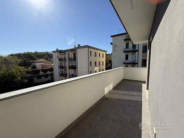 Inserito in una piccola palazzina moderna di soli due piani con spese condominiali minime, l'appartamento è situato al secondo e ultimo piano servito da ascensore , in posizione dominante e silenziosa. L'ingresso si apre su un ampio e luminosissimo living con cucina a vista, caratterizzato da una grande vetrata scorrevole che conduce al terrazzo abitabile, perfetto per pranzare all'aperto o rilassarsi in totale privacy.