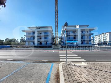 L'appartamento dispone di una spaziosa zona giorno con cucina a vista, due camere da letto, un bagno finestrato con doccia e un ampio terrazzo di oltre 70 mq esposto ad est, da cui si può godere di una vista mozzafiato sul mare e sul litorale. Le caratteristiche principali dell'edificio includono una costruzione di alta qualità, impianto fotovoltaico condominiale, cappotto termico per l'isolamento, infissi ad abbattimento acustico e termico, e un efficiente impianto di riscaldamento e raffreddamento con pompa di calore a bassi consumi energetici.