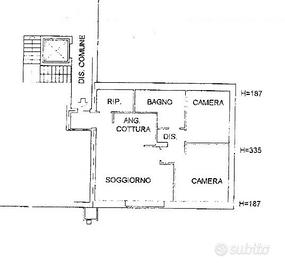 L'appartamento è così composto: ingresso, soggiorno con angolo cottura, disimpegno, 2 camere, bagno e locale ripostiglio/lavanderia trasformabile in un eventuale secondo bagno.