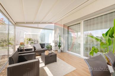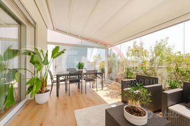 VIGODARZERE CENTRO. Proponiamo in vendita elegante e signorile attico sviluppato in un unico livello al secondo e ultimo piano, in palazzina di sole 7 unità abitative con esposizione Sud - Est - Nord. L'immobile viene venduto COMPLETAMENTE ARREDATO ed è stato realizzato con le più moderne tecnologie impiantistiche, eccellente qualità costruttiva caratterizzata da bassi consumi energetici in classe A4, struttura antisismica, elevato abbattimento acustico e comodo a tutti i principali servizi. La soluzione è impreziosita da un terrazzo di 80 mq attrezzato con Serra Bioclimatica e un ulteriore ampio poggiolo di 13 mq. Internamente è presente un ampio soggiorno con cucina a vista di circa 50 mq con vetrata scorrevole, due camere da letto matrimoniali di 15 mq e 24 mq, una camera singola di 10 mq e doppi servizi finestrati. A completamento garage doppio in larghezza di 35 mq e un posto auto esterno nel parcheggio condominiale. Classe energetica A4 IPE 24,92 - Pavimentato in listoni di rovere spazzolato - Fotovoltaico 6 KW - Riscaldamento a pavimento in pompa di calore - Impianto elettrico in domotica per controllo carichi, tapparelle e videocitofono - VMC (ventilazione meccanica controllata) - Zanzariere - Basculante motorizzato - Portoncino con chiave e spioncino elettrico collegato - Struttura in Isospam (legno/cemento) Grimaldi Immobiliare via G. Franco 2/A - 35010 Mejaniga di Cadoneghe (PD) Fisso: Cadoneghe@grimaldifranchising.it https://grimaldi.casa/