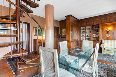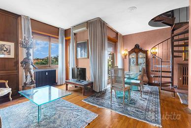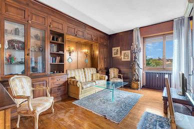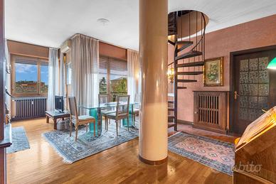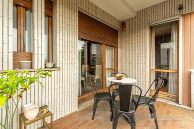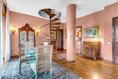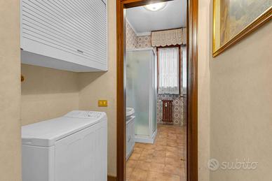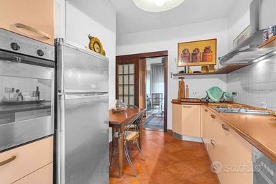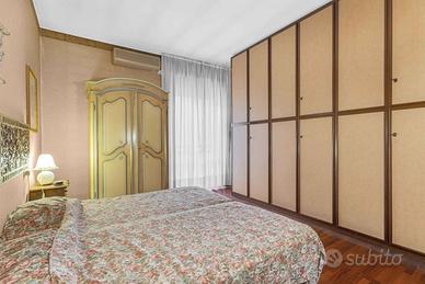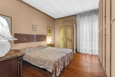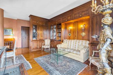Ingresso accogliente, che introduce a unabitazione studiata nei dettagli e caratterizzata da una distribuzione razionale degli spazi.Soggiorno doppio, luminoso e di grande rappresentanza, ideale per ospitare momenti di convivialità o per vivere la quotidianità con il massimo comfort. Da qui si accede a un ampio balcone vivibile, perfetto per un angolo relax all'aperto.Sala da pranzo separata, raffinata e funzionale, perfetta per ricevere ospiti.Cucina abitabile con balcone di servizio, spaziosa e pensata per rispondere a ogni esigenza pratica.Due camere da letto di generose dimensioni, intime e silenziose, ideali per garantire privacy e riposo.Doppi servizi, entrambi rifiniti con cura e pensati per massimizzare la funzionalità quotidiana.Lavanderia dedicata, comoda e discreta.Cantina, metratura 8mq circa.
