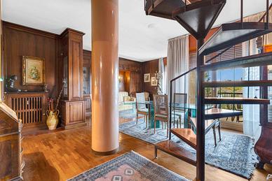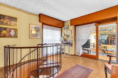 Una ampia scala a chiocciola interna conduce al piano superiore, dove si sviluppano due ambienti versatili e personalizzabili: ideali per ricavare una seconda cucina con sala da pranzo, un soggiorno...