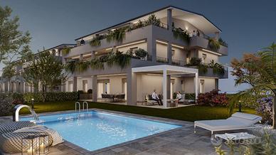 Olgiate City - A due passi dal campo sportivo e da tutti i servizi, a confine con Merate, in costruzione mini residence composto da due eleganti minipalazzine. Classe A4. L'attico è completamente indipendente sui quattro lati ed è circondato da un prezioso terrazzo di 252 mq dove sarà possibile pranzare o cenare all'aperto e ammirare preziosi tramonti. Questa unità immobiliare è servita da un ascensore privato.Questo spazio ha una superficie complessiva di 136 mq oltre terrazzi ed è composto da 5 spaziosi locali, tra cui dominano la zona giorno con ampie vetrate scorrevoli che ci portano attraverso le trasparenze sul terrazzo. Una cucina abitabile a vista ed un bagno completo compongono la zona sopra indicata mentre quattro grandi camere da letto di cui una suite con bagno e cabina armadio privati compongono la zona notte. L'impianto di riscaldamento è a pavimento, il raffrescamento è ad aria e la ventilazione meccanica controllata è a doppio flusso con recuperatore di calore. Finiture di alta qualità, gli infissi e le finestre sono in triplo vetro PVC per garantire un'ottimo isolamento sia termico che acustico.