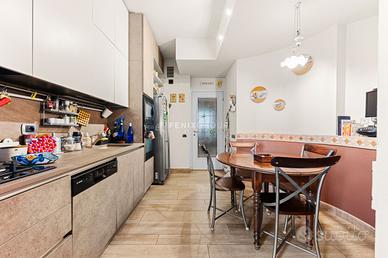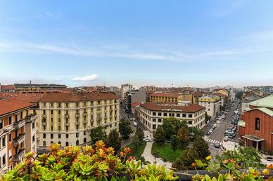 FenixGroup propone in vendita un appartamento esclusivo su due livelli, situato all'ottavo e nono piano di un elegante stabile degli anni Sessanta, dotato di due ascensori e servizio di portineria attivo mezza giornata, in via Sansovino 33 a Milano.CLICCA IL PULSANTE "VIRTUAL TOUR" E VIVI LA PRIMA VISITA VIRTUALE DENTRO L'IMMOBILEQuesta proprietà rappresenta una rara opportunità per chi desidera vivere in un contesto di grande respiro, con spazi generosi, una luminosità avvolgente e una terrazza panoramica privata di eccezionale metratura.L'immobile è così composto: * doppio soggiorno * cucina abitabile * ripostiglio all'ingresso con appendiabiti * disimpegno * tre camere da letto * doppi servizi finestrati * tre balconi * terrazzo panoramico di circa 155 mqL'ingresso conduce direttamente a un ampio soggiorno doppio, estremamente luminoso, caratterizzato da grandi porte finestre che si affacciano su un primo balcone con vista aperta sulla città. Accanto all'ingresso è presente un comodo ripostiglio, utilizzabile anche come guardaroba o spazio di servizio. La cucina abitabile, spaziosa e funzionale, gode di un'ottima luminosità e di affacci sul tranquillo cortile interno.La zona notte, ben separata dalla zona giorno, è composta da tre camere da letto: una matrimoniale ampia e finestrata, una seconda camera versatile adatta come studio o stanza per gli ospiti, dotata di balcone, e una terza camera di medie dimensioni. Completano la proprietà due bagni finestrati, ampi e curati nei dettagli.Elemento distintivo di questa residenza è la terrazza di circa 155 mq al piano superiore, di pari metratura rispetto all'appartamento, collegata da una scala interna. Uno spazio introvabile per la zona, ideale per vivere momenti di relax, organizzare cene all'aperto o creare un'area verde privata con vista panoramica sullo skyline milanese. Al piano è inoltre presente una zona comoda adibita a lavanderia e stireria, perfettamente integrata alla funzionalità della casa.Ecco il link