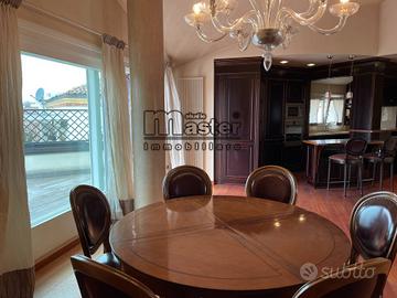 La cucina, permette di accedere ad una terrazza di 50 mq, ideale per godere dei momenti di relax all'aperto. nella zona notte troviamo la camera matrimoniale con cabina armadio e una camera singola e i due bagni.