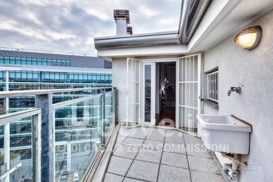 Rif: DV-11655-1 (193511272) - [Rif. DV-11655] .A Milano, in via Giacomo Manzù 2, proponiamo in vendita un attico angolare unico nel suo genere, completamente e finemente ristrutturato, disposto su due livelli e dotato di doppia esposizione. L'immobile si trova in uno stabile moderno del 2009 nel cuore di Santa Giulia, a pochi passi dall'Arena delle Olimpiadi Invernali 2026 e a soli 2 minuti a piedi dalla metropolitana e dalla stazione di Rogoredo, oltre che vicino ad un comodo accesso alle principali tangenziali di Milano. Inoltre il quartiere, in continua crescita, è ricco di servizi, scuole, supermercati, aree verdi ed è ottimamente collegato con il resto della città. L'ingresso accoglie in un luminoso soggiorno con ampia cucina a vista, valorizzato da doppia finestratura e affaccio su un grande terrazzo, dove poter vivere momenti di relax all'aperto con una splendida vista sullo skyline di Milano. Il piano settimo ospita una camera matrimoniale con parquet e affaccio interno, oltre a un bagno finestrato, completamente rinnovato. Una scala in legno con inserti in vetro antisfondamento e corrimano su misura collega il soggiorno al piano superiore, dove si apre una grande zona open - space attualmente utilizzata come camera padronale. Completano il piano ottavo un secondo bagno anch'esso ristrutturato, una capiente cabina armadio e un terrazzino con affaccio sul cortile interno. La superficie catastale complessiva è di 100 mq, mentre la superficie reale si aggira intorno ai 120 mq. L'immobile è inoltre completo di box singolo e cantina, inclusi nel prezzo. Le porte di ottima qualità, gli infissi con tapparelle elettriche e zanzariere, la tenda esterna elettrica, la presenza della cassaforte e l'impianto di climatizzazione in ogni ambiente garantiscono comfort e qualità. Viene venduto semi-arredato. Lo stabile in cui si trova dispone di un curato cortile condomi - Classe: D - IPE: 151.92 kWh/mq anno