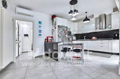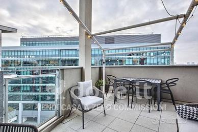 Rif:DV-11655-2 (128288546) - [Rif. DV-11655] .A Milano, in via Giacomo Manzù 2, proponiamo in vendita un attico angolare unico nel suo genere, completamente e finemente ristrutturato, disposto su due livelli e dotato di doppia esposizione. L'immobile si trova in uno stabile moderno del 2009 nel cuore di Santa Giulia, a pochi passi dall'Arena delle Olimpiadi Invernali 2026 e a soli 2 minuti a piedi dalla metropolitana e dalla stazione di Rogoredo, oltre che vicino ad un comodo accesso alle principali tangenziali di Milano. Inoltre il quartiere, in continua crescita, è ricco di servizi, scuole, supermercati, aree verdi ed è ottimamente collegato con il resto della città. L'ingresso accoglie in un luminoso soggiorno con ampia cucina a vista, valorizzato da doppia finestratura e affaccio su un grande terrazzo, dove poter vivere momenti di relax all'aperto con una splendida vista sullo skyline di Milano. Il piano settimo ospita una camera matrimoniale con parquet e affaccio interno, oltre a un bagno finestrato, completamente rinnovato. Una scala in legno con inserti in vetro antisfondamento e corrimano su misura collega il soggiorno al piano superiore, dove si apre una grande zona open - space attualmente utilizzata come camera padronale. Completano il piano ottavo un secondo bagno anch'esso ristrutturato, una capiente cabina armadio e un terrazzino con affaccio sul cortile interno. La superficie catastale complessiva è di 100 mq, mentre la superficie reale si aggira intorno ai 120 mq. L'immobile è inoltre completo di box singolo e cantina, inclusi nel prezzo. Le porte di ottima qualità, gli infissi con tapparelle elettriche e zanzariere, la tenda esterna elettrica, la presenza della cassaforte e l'impianto di climatizzazione in ogni ambiente garantiscono comfort e qualità. Viene venduto semi-arredato. Lo stabile in cui si trova dispone di un curato cortile condomi - Classe: D - IPE: 151.92 kWh/mq anno