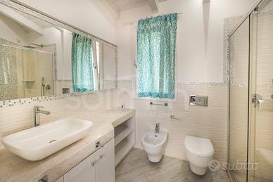 Rif: AO618 Classe energetica: B Attico con Super Attico Panoramico Rokkaria Villasimius La bellezza senza compromessi, nel cuore della perla del Sud Colori incredibili, acque cristalline, calette nascoste e spiagge da sogno: Villasimius, con la sua natura mozzafiato, è uno dei luoghi più iconici del Mediterraneo. Ed è proprio nel pieno centro ma in zona silenziosa e riservata, sopra il residence Rokkaria*, che vi presentiamo un attico con super attico unico nel suo genere, indipendente, panoramico e curato nei minimi dettagli. La proprietà, realizzata recentemente, si sviluppa su due livelli per un totale di 128 mq catastali, con due ingressi indipendenti (pedonale e carrabile) e due posti auto privati (attualmente utilizzati come cortile con zona doccia e barbecue). Il piano principale si apre su un cortile esclusivo di circa 90 mq, ideale per pranzi allaperto e serate barbecue. Laccogliente zona living con angolo cottura perfettamente attrezzata con arredi di qualità si affaccia su una terrazza coperta e panoramica, trasformata in un delizioso loggiato abitabile. Completano il piano due camere da letto luminose e panoramiche (una con balcone) e due bagni finestrati elegantemente rifiniti. Il piano superiore, raggiungibile da una scenografica scala in pietra, è un vero e proprio rifugio privato con vista mare: una suite con bagno e una terrazza da sogno, facilmente trasformabile in un mini appartamento suite autonomo con angolo cottura perfetto per creare reddito e per godersi albe e tramonti sul mare. Grazie allaccesso indipendente, infatti, questo livello può essere anche affittato separatamente, generando un rendita. Tra le dotazioni principali: - Pompe di calore in tutti gli ambienti - Caldaia a gas per lacqua sanitaria - Docce in cristallo ampie e moderne - Finiture di qualità superiore La casa è ubicata in una strada chiusa e poco trafficata, garantendo massima privacy e tranquillità, a due passi da tutti i servizi e...