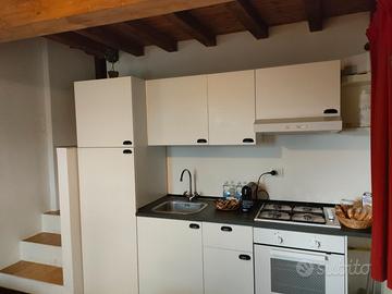 -Vani 2 + WC (ingersso in zona pranzo con cucina completa di elettrodomestici / WC con cabina doccia e finestra / camera da letto con finestra e aria condizionata);