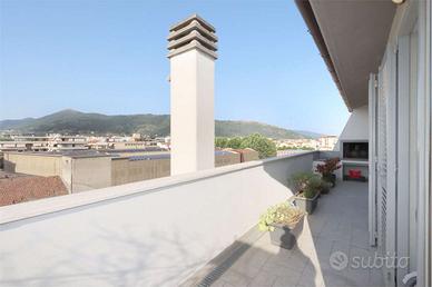 L'attico è composto da ingresso, bagno, 2 ampie camere (una con bagno privato) e terrazzo al piano 4°.