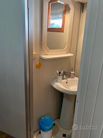 Bungalow in ottime condizioni da 6/8 posti letto, ubicato all'interno del camping Linus a 500 metri dal mare e di fronte alla piazza del mercato stagionale, possibile portare cani di media taglia. Composto da cucinotto e veranda, servizio con water e lavandino(le docce con acqua calda si trovano a 20 metri dalla piazzola), salottino con divano letto e roulotte con possibilità di 5 posti con letto matrimoniale più letto alla francese. Nella quota stagionale, di € 3.250,00 annua è compreso luce e acqua, docce con acqua calda, posto auto. Prezzo trattabile.