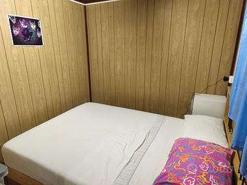 Camera con letto matrimoniale, cameretta con divano letto + brandina, bagno con doccia, cucina e ampia veranda con tende che si possono chiudere quando fa freddo e aprire in estate.