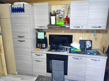 Soggiorno dotato di cucina completa con 4 fuochi a gas, forno elettrico e frigorifero con congelatore,. divano letto e tavolo estensibile.