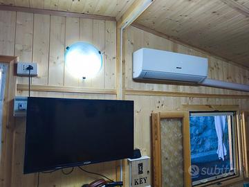 Condizionatore (in soggiorno) con pompa di calore caldo e freddo, Scalda ambiente elettrico in camera da letto.
