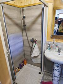 Bagno completo di doccia, wc, lavandino e bidet.