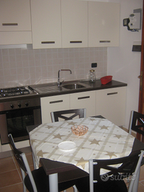 L'appartamento, per un massimo di 7 posti letto, è composto da soggiorno con angolo cottura, camera da letto matrimoniale, stanzetta e bagno e dispone di tutti i confort come condizionatore caldo/freddo, lavatrice e stoviglie.