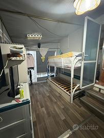 Vediamo Casa- car in un villaggio turistico a 4 stelle a Fondi, in provincia di Latina, Holiday Village. La casa car presenta al suo interno 5 posti letto, armadi, bagno con sanitari e doccia, scaldino a gas e servizio di carico e scarico. Al suo esterno presenta una veranda con altrettanti armadi e 2/3 posti letto. La piazzola contiene: un cucinino completo con lavandino, fornelli, lavatrice e frigorifero (tutti funzionanti); un tavolo e un gazebo con copertura in pvc. Il tutto si trova a 50m dal mare. Il villaggio è provvisto di supermercato, bar, piscina, servizio spiaggia, ristorante, discoteca e intrattenimento per le famiglie.