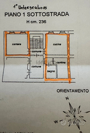 Piano sotto strada con 2 stanze (cucina in combinazione con salotto e camera letto separata).