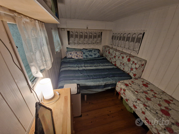 1x camera da letto (letto matrimoniale) e divani, 1x bagno (doccia e bagno allacciati in fogna), 1x cucina, 1x veranda esterna ombreggiata. Adatta per 2 max 3 persone.